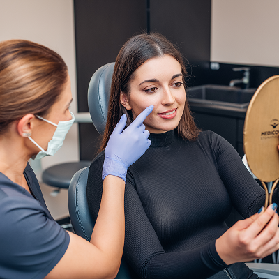 Aesthetic medicine in dentistry includes various types of procedures aimed at improving the appearance of the skin, face and complexion. This is usually made in order to rejuvenate the skin and it includes, among others, smoothing, making it glow, improving its elasticity, getting rid of dark spots, as well as its general regeneration. Aesthetic medicine is more and more often a natural complementary treatment to dental treatment. At the end of orthodontic or prosthetic treatment, it’s a good idea for the patient to complete the makeover with treatments improving the face shape, the skin condition or the shape of the smile.
