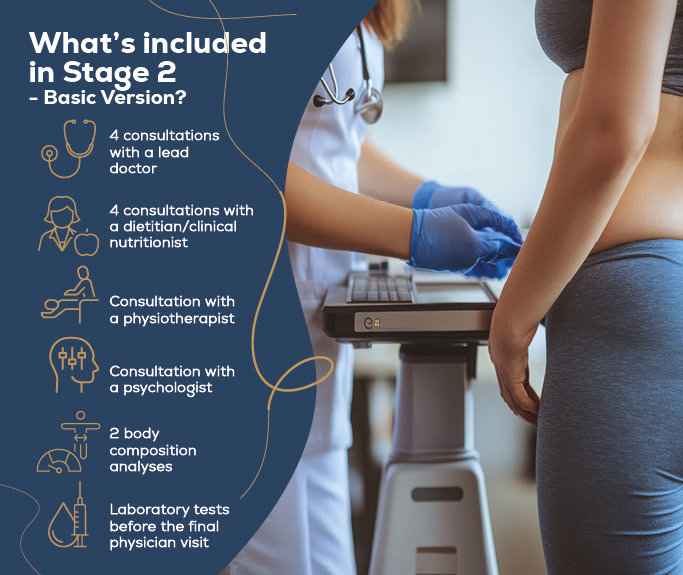 The Obesity Treatment Program is the result of many years of experience from an interdisciplinary team of specialists. It was created for adults struggling with overweight and obesity, offering comprehensive care at every stage of treatment. The program was developed in cooperation with physicians certified by the Polish Association for the Study of Obesity (PTLO) and the Polish Society for Obesity Research (PTBO), as well as dietitians, psycho-dietitians, psychologists, and physiotherapists.