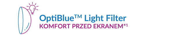 Filtr światła OptiBlue™ - oferuje MAX wyraźne widzenie i najwyższą skuteczność filtrowania światła niebiesko-fioletowego (60%) wśród soczewek kontaktowych.
