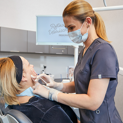 All aesthetic procedures performed by Medicover Dentistry doctors are carried out with the use of anaesthesia. The preparation and method of anaesthesia are individually selected according to the patient’s needs and also depend on the type of treatment performed. Surface or infiltration anaesthesia is the most commonly used type of anaesthesia. It ensures that the procedure is performed in a comfortable and painless manner.